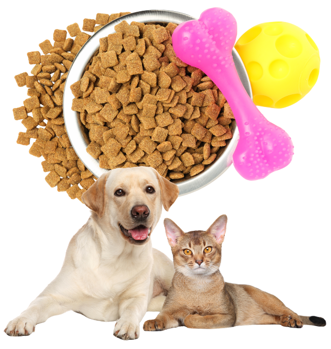 Cibo delle migliori marche, accessori, giochi, e capi d’abbigliamento.